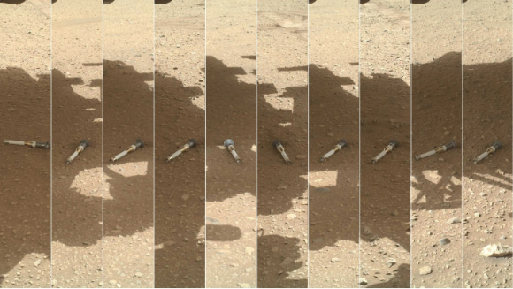 Waiting for pickup to Earth: Several sample containers collected by the Perseverance rover, awaiting a transport vehicle to deliver them to a launch rocket | Source: NASA/JPL-Caltech/MSSS