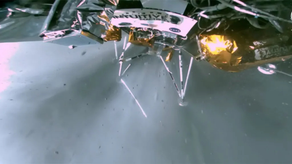 Standing on the Moon, albeit with a broken leg. The Odysseus lander by Intuitive Machines, the first private spacecraft to successfully land on the Moon. Photo: Intuitive Machines