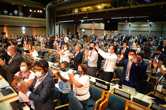 Kickoff Celebrations. What lies ahead? Participants of the UN Environment Assembly in Nairobi celebrate the approval of the resolution on combating plastic pollution. Now, the crucial task of implementation awaits. | Photo: UNEP