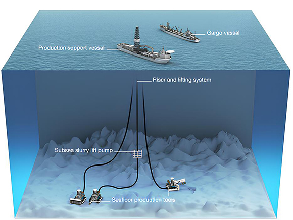 Mining companies are setting their sights on these polymetallic nodules. Illustration of underwater mining | Mikkel Juul Jensen / Science Photo Library
