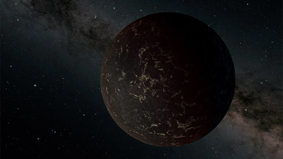 In this case, the far side is also the dark side. An artist's representation of the unlit side of exoplanet LHS 3844b, Kua'kua | Illustration: NASA/JPL-Caltech/R. Hurt (IPAC)