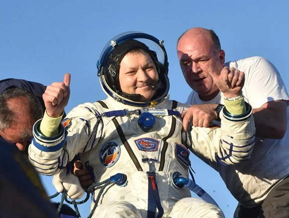 More than three years in space. Oleg Kononenko exits the Soyuz spacecraft after landing in Kazakhstan this week | Photo: NASA/GCTC/Pavel Shvets