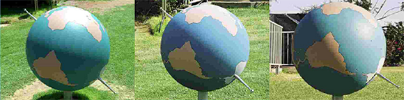 Equinoxes and solstices on the Rishpon Globe. From left to right: summer solstice, vernal and autumnal equinoxes, winter solstice | Photo: Dr. Moshe Rishpon