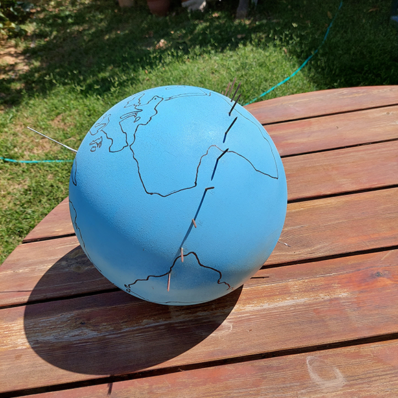 This model was the first of its kind in the world, mounted by Dr. Moshe Rishpon, founder of the Clore Garden of Science and the Youth Activities Unit at the Weizmann Institute of Science in Rehovot, Israel, from which the Davidson Institute for Science Education emerged and developed. Dr. Rishpon, who resides at the Weizmann Institute, recently celebrated his 90th birthday. His passion and enthusiasm for science and the wonders of nature continues to amaze and inspire his colleagues, many of whom are a generation or two younger (including the author of this article). The globe model he devised has been referred to in literature as "Rishpon’s Globe”