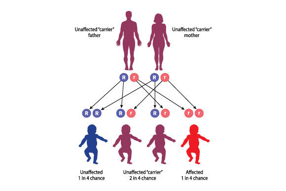 The inheritance of recessive genetic diseases, such as cystic fibrosis. The probabilities of parents who are carriers to have healthy or sick children | Blamb, Shutterstock