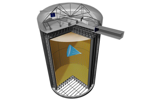 Contrary to the predictions of the Standard Model, neutrino particles have mass. Neutrino detector at the Super Kamiokande facility in Japan | Illustration: Paul Wootton, Science Photo Library