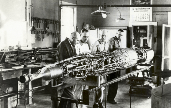 Ground-breaking rockets. Goddard (on the left) and his team at the development laboratory in New Mexico | Photograph: Science Photo Library