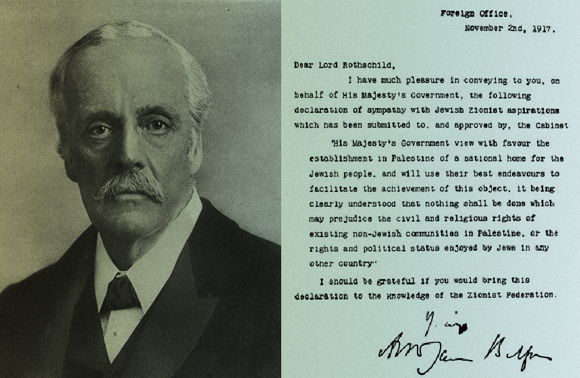 Softened version, but with the promise the Zionist movement longed for. Balfour and the famous letter | Source: Wikipedia