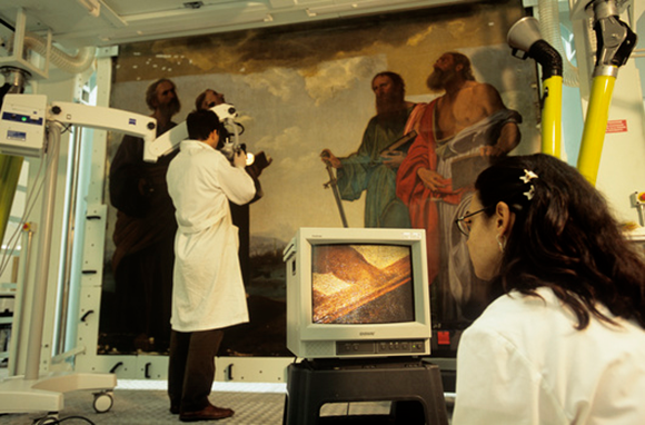 ברסטורציה מתערבים ביצירת האמנות על מנת להחזירה למצבה המקורי. רסטורטורים בוחנים יצירת אמנות במילנו, איטליה | Pasquale Sorrentino / Science Photo Library