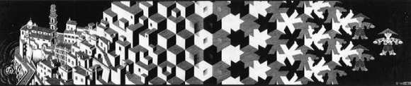 האסתטיקה המתמטית של אשר. היצירה “מטמורפוזה 1” המוצגת במוזיאון אֵשֶׁר בהאג, הולנד | מקור: ויקיפדיה, נחלת הכלל