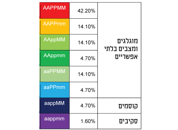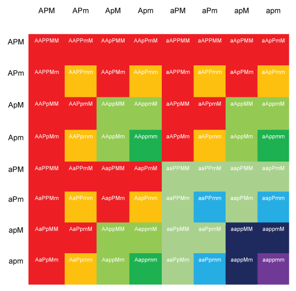 הצלבת שלושת הגנים AaPpMm x AaPpMm: