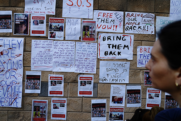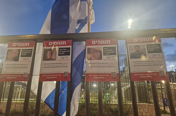 מעט מאוד ידוע על ההתמודדות של אזרחים שנחטפו בידי ארגון טרור. כרזות עם שמות ותמונות של חטופים, על גדר בנשר | ויקימדיה, Hanay