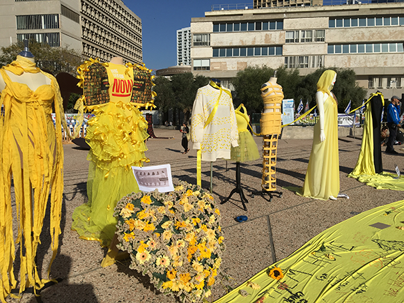 "בעוד שפעם שאלו על השבוי אם הוא בגד במדינה, הרי היום אנו שואלים על המדינה אם היא בגדה בשבוי". תמונה מכיכר החטופים ברחבת מוזיאון תל אביב לאמנות | ויקימדיה, Yossipik