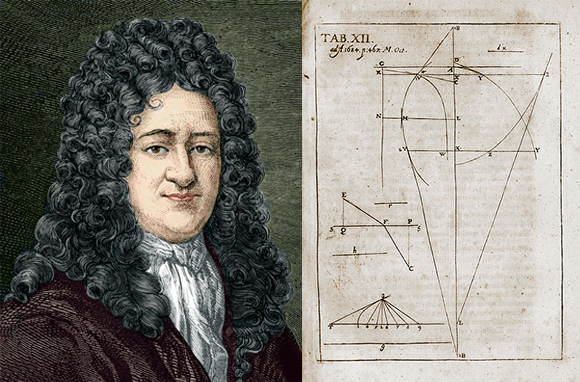 את מושג הפונקציה טבע לראשונה הפילוסוף הגרמני גוטפריד וילהלם לייבניץ. לייבניץ לצד איורים של גרפים ממאמרו על חשבון דיפרנציאלי | Sheila Terry / Mathematical Association Of America / Science Photo Library