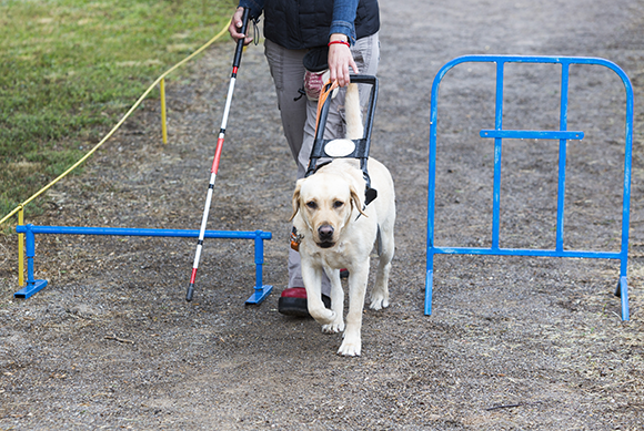 בסוף תהליך האימון הכלבים מסוגלים להוביל אדם שעיניו מכוסות אל היעד, לאורך דרך זרועת מכשולים. כלב נחייה עובר את המבחן | Shutterstock, Belish