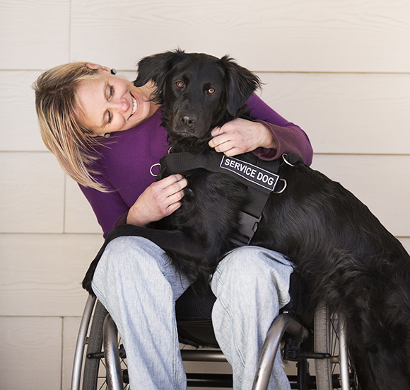 כלבים שנמצאים בלתי מתאימים לשמש כלבי נחייה עוברים הסבה מקצועית לכלבי תמיכה לאנשים בעלי צרכים מיוחדים. כלב שירות עם אישה בכסא גלגלים | Shutterstock, MintImages