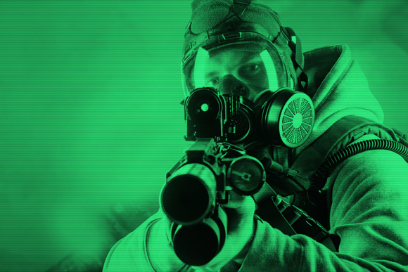 אפשר לנצח את הזומבים – כל מה שצריך הוא שקצב ההרג יהיה מהיר יותר מקצב ההדבקה. חיל במסכת גז עם רובה | Shutterstock, PRESSLAB