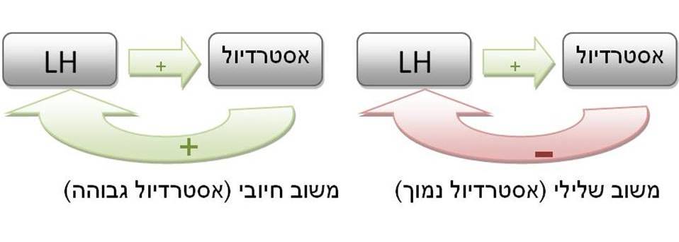 מנגנון מהסוג שתיארנו בין האסטרדיול ל-LH נקרא "משוב שלילי": חומר אחד גורם לכמות החומר השני לעלות, ואילו החומר השני גורם לכמותו של הראשון לפחות. תהליכים רבים בגוף האדם עושים שימוש במנגנוני משוב שלילי, במיוחד במערכת ההורמונלית שחייבת לשמור על שיווי משקל עדין בין ההורמונים השונים.
