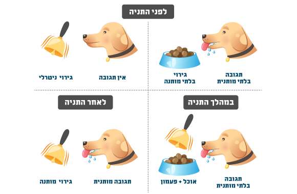 הכלב למד – צלצול פעמון יוביל לאוכל, ולכן הוא מרייר. התניה קלאסית | מקור: VectorMine, Shutterstock