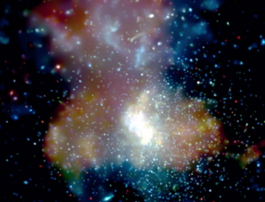 צילום של מרכז הגלקסיה על ידי טלסקופ רנטגן. הכתם הבהיר במרכז הוא החור השחור, הופלט קרינת רנטגן רבה. הכתמים הבהירים הרבים בסביבת הם כוכבים גדולים במיוחד | התמונה לקוחה מנאס"א: NASA/CXC/UMass Amherst/Q.D.Wang et al
