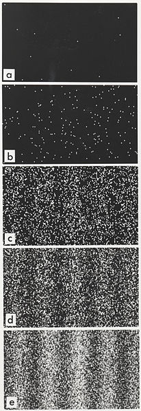 היווצרות תבנית התאבכות מפגיעות אלקטרונים בניסוי החריץ הכפול | תמונה: ויקיפדיה
