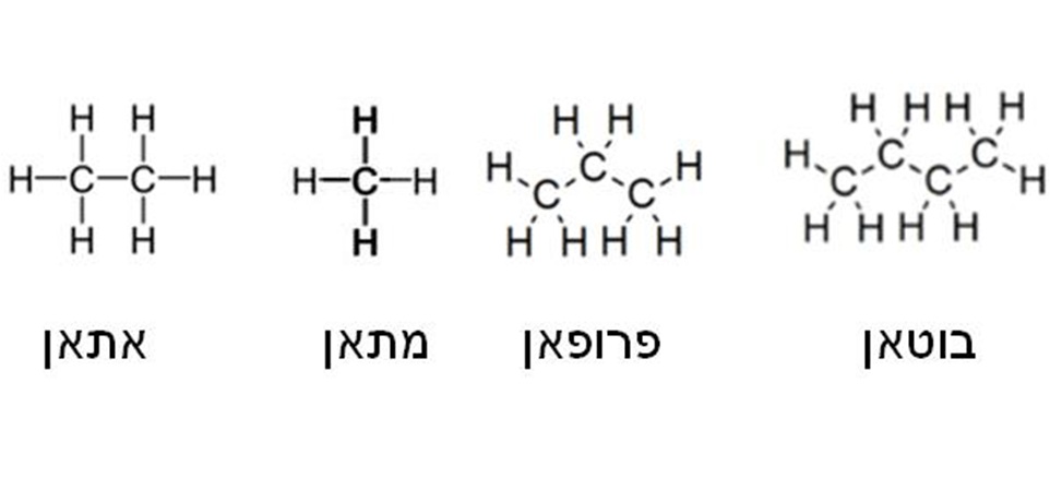 הנוסחא הכימית של המרכיבים העיקריים של הגז הטבעי. תמונה זו מבוססת על תמונות שנלקחו מויקיפדיה.