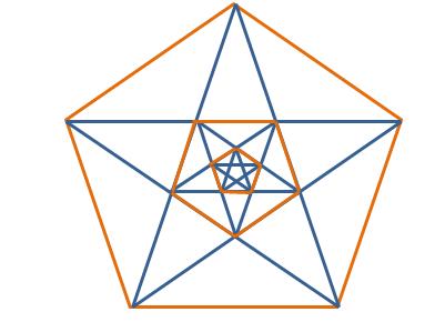חיבור אלכסונים במחומש משוכלל יוצר מחומש משוכלל קטן יותר