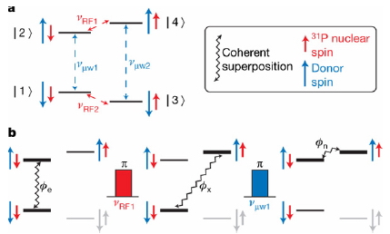 החוקרים הדגימו, כיצד באמצעות חשיפת האלקטרון וגרעין הזרחן לקרינת רדיו, וקרינת מיקרוגל בתדרים מדויקים, הם מסוגלים להעביר את ערך הספין מן האלקטרון אל גרעין הזרחן, ולאחר מספר שניות (זמן חיים ארוך מאוד במושגי הספין של האלקטרון), להעביר באותו האופן את המידע בחזרה אל האלקטרון, ולקרוא אותו. (הסבר מפורט יותר של התהליך מוסבר בתמונה)