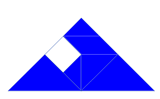במקום לצבוע את חלקי הטנגרם כדי להבדיל ביניהם, אנו יכולים למחוק את חלקם. במשולש שלמטה צבענו את כל חלקי משחק הטנגרם בכל הפירוקים בכחול, פרט לריבועים שמחקנו.