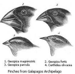 ארבעה מינים של פרושי דרווין – ציפורים שהעניקו לדרווין את הההשראה לתורת האבולוציה | תמונה: ויקיפדיה