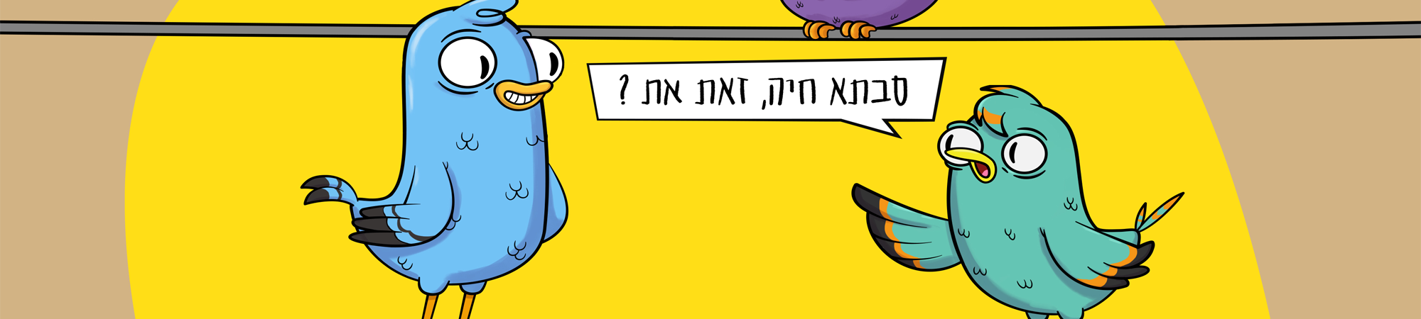 ציפור אחת פונה לשנייה, שנראית שונה מאוד ממנה, ושואלת "סבתא חיה זו את?" | יוסי לגזיאל