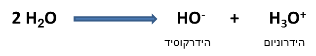 מולקולת מים מתפרקת ליון שלילי שנקרא הידרוקסיד וליון חיובי שנקרא הידרוניום. אולם לא כל מולקולות המים מתפרקות באופן הזה ומספר יוני ההידרוניום או ההידרוקסיד תלוי מאוד ב-pH (רמת החומציות או הבסיסיות) של המים. כלומר, ככל שהמים חומציים יותר כך ריכוז יוני ההידרוניום יעלה ואילו ככל שהמים יהיו בסיסיים יותר יעלה ריכוז יוני ההידרוקסיד.
