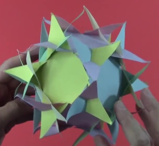 תוכלו לבנות את שאר הדגמים בצורה דומה. כל דגם מורכב ממצולעים שחותכים זה את זה, כך ש החריצים מאפשרים למישורים של הנייר לעבור זה דרך זה. שימו לב לבחירת הצבע של כל חלק כך שהמבנה השלם יהיה סימטרי. כן, שימו לב לטכניקה ליצירת הפינות התלת-כיווניות בדגמים עם חלקים יותר גדולים שצריך לקפל ולפתוח זה סביב זה. היעזרו בתמונות ובסרטון.