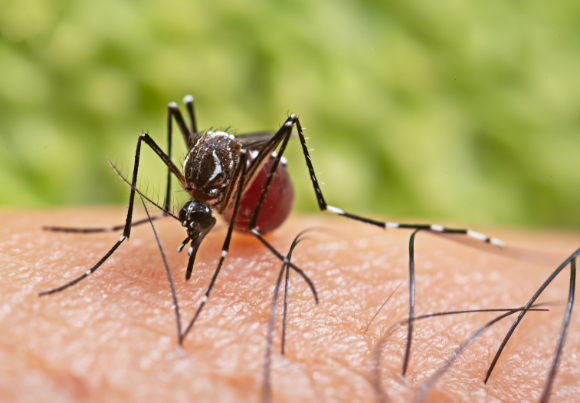 מעבירה לבני אדם את מחלת הזיקה וקדחת הדנגי. יתושה מהמין Aedes aegypti באמצע ארוחה | frank60, Shutterstock