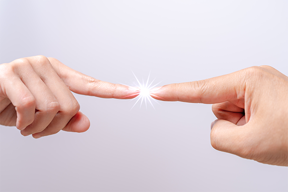 מתברר שאנו יכולים לחוש מגע בקצות הציפורניים שלנו. אצבעות מורות כמעט ונוגעות זו בזו | BEAUTY STUDIO, Shutterstock