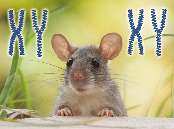 במחקר נוצרו עכברים בריאים ותקינים, עם תרומה גנטית משני האבות. עכבר וכרומוזומי המין XY, המציינים את שני האבות שלו | Zsschreiner, Raul Baena, Shutterstock