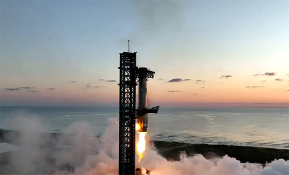 חברת ספייס אקס השלימה בהצלחה את טיסת הניסוי החמישית של מערכת סטארשיפ, כולל תמרון נחיתה מוצלח של טיל השיגור, עד ללכידה כמתוכנן מהאוויר בעזרת זרועות מיוחדות של מגדל השיגור עצמו. חללית סטארשיפ שוגרה על גבי טיל סופר-הבי מאתר השיגור של החברה בטקסס, ולאחר הפרדה מוצלחת חזר הטיל בפעם הראשונה לאתר השיגור עצמו, הפעיל את מנועיו כמתוכנן, התייצב באוויר ליד מגדל השיגור ונתפס בזרועותיו. תמרון כזה מאפשר להניח את הטיל בעדינות על הקרקע, וסולל את הדרך למיחזור יעיל וכלכלי של הטילים הענקיים.