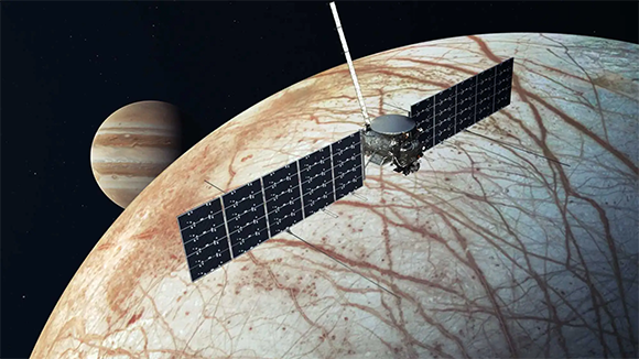 תבדוק אם יש תנאים לקיום חיים באוקיינוס הנוזלי מתחת לשכבת הקרח של אירופה. אילוסטרציה של החללית מסביב לירח של צדק | NASA/JPL-Caltech