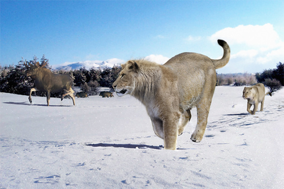 שחזור מאויר של אריה המערות (Panthera spelaea), מקור: spl