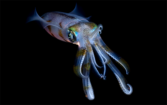 צוות חוקרים בינלאומי פיתח בהשראת הדיונונים שיטה שמשתמשת בזרמי סילון להובלת תרופות לאיברים במערכת העיכול. דיונון מהמין לוליגו אילתי | Shutterstock, DiveIvanov