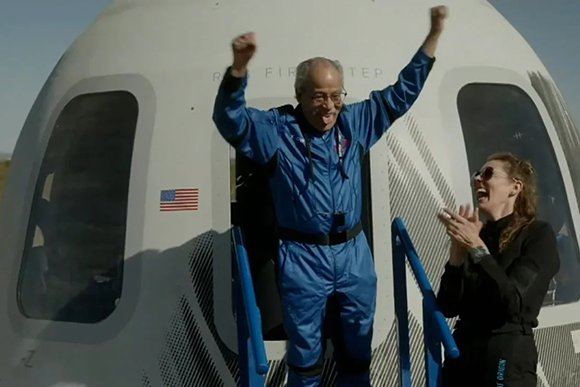 דווייט שבר את השיא של השחקן ויליאם שאטנר, שטס גם הוא לגבול החלל עם בלו אוריגי’ן ב-2021, כשהיה בן 90 ושישה חודשים. “אני באקסטזה”, אמר אחרי הנחיתה. “חשבתי שאני לא זקוק לזה בחיי, אבל עכשיו גיליתי שכן”. לכתבה המלאה באתר. לכתבה נוספת על דווייט והמאבק לשוויון בחלל.