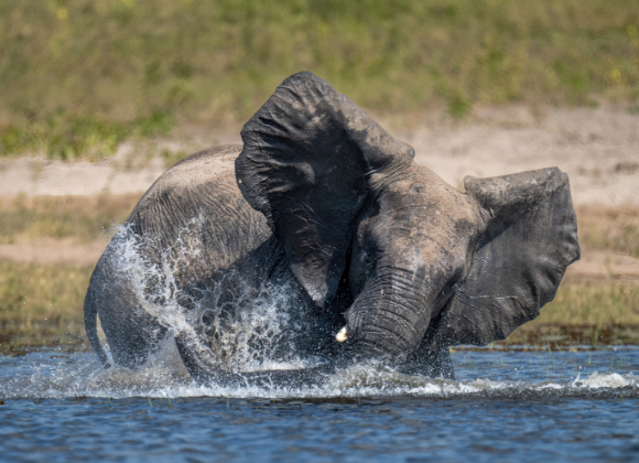 בכמה מגבי המים שמופו נמצאו מושבות גדולות של חיידקים כחוליים. פיל סוואנה אפריקאי מתרחץ במקווה מים מקומי | Nick Dale Photo, Shutterstock