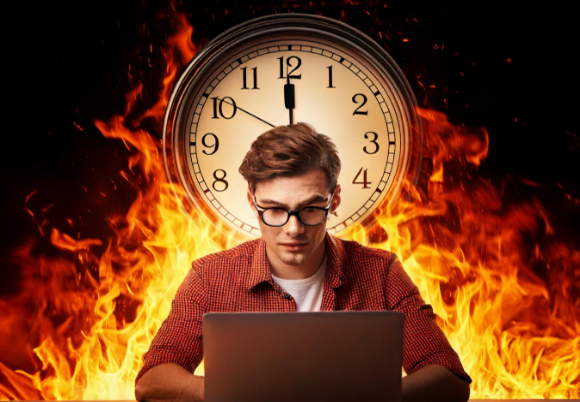 עדיף להגיש עבודות בדיוק בזמן. אדם מגיש משימה בלחץ של זמן | ליאת פלי באמצעות Firefly