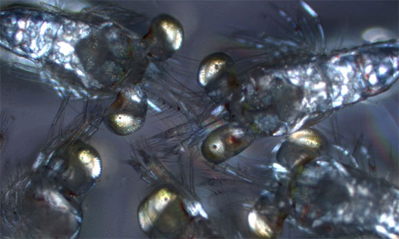 לבעלי חיים רבים בים הפתוח יש גוף שקוף, שמסתיר אותם מעיניהם של טורפים. אבל העיניים שלהם, המכילות צבענים (פיגמנטים) כהים, אינן שקופות, ולכן חושפות אותם לסיכון. כדי להתמודד עם הבעיה הזאת, אצל סרטנאים (crustaceans) צעירים התפתחה אסטרטגיה מעניינת: שכבה מחזירת אור המונחת מעל הצבענים שבעין. השכבה מחזירת האור יוצרת זוהר בצבע המותאם לסביבת המחיה של הסרטן הצעיר. הזוהר מסתיר את העיניים, וכך מאפשר לבעל החיים להיות כמעט בלתי נראה.