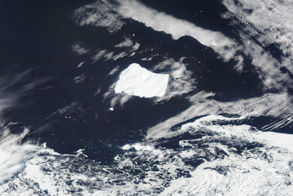 במשך מספר שנים הסתחרר במערבולות ימיות. הקרחון A23a באוקטובר 2024 | מקור: MODIS Land Rapid Response Team, NASA GSFC