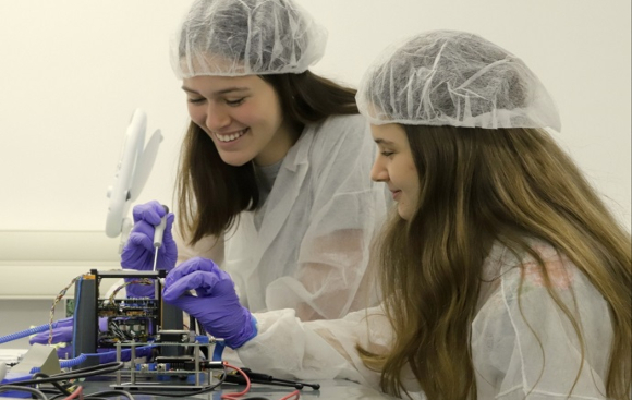תלמידות בעבודה על הלוויין באולפנת אמית, גבעת שמואל | צילום: משרד החדשנות, המדע והטכנולוגיה