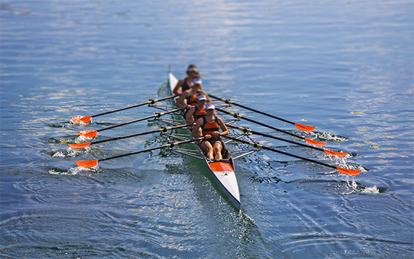 החוקרים הסיקו שהנטייה לשיתוף פעולה התפתחה כתוצאה מחיים בקבוצות קטנות שבהן אנשים מנהלים אינטראקציות תכופות וחוזרות, ובנוסף מתחרות בין אותן קבוצות. קבוצת חותרות בסירה | Ivan Smuk, Shutterstock