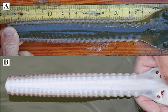 המסור עטוף בנדן מייד אחרי ההשרצה (מבט מעל A, מבט מלמטה B) | תמונה Poulakis et al