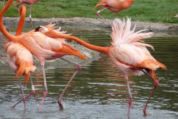 חוקרים מבריטניה גילו כי עופות פלמינגו מקיימים קשרי חברות עם פרטים אחרים בלהקה, ומעדיפים לבלות עם פרטים בעלי אופי דומה. החוקרים עקבו אחרי התנהגות הפרטים בשתי להקות של פלמינגו, ממינים שונים, ותיעדו את האופי של כל פרט. לאחר מכן הם בחנו את התנהגותם בכלים סטטיסטיים המשמשים לניתוח רשתות חברתיות. הם מצאו כי בשתי הלהקות פרטים נועזים ואגרסיביים יותר העדיפו לבלות זמן עם פרטים דומים מבחינת האופי התוקפני, בעוד העופות הכנועים והחששניים יותר העדיפו לשהות יחד. יתכן גם שלאופי יש קשר למעמד של הפרט בלהקה, אך הממצאים בתחום זה לא היו אחידים בשתי הלהקות שנבדקו במחקר. מחקרים קודמים מצאו מגוון של יונקים היוצרים קשרי חברות עם פרטים מסוימים בקבוצה שלהם, מקופי אדם ועד עטלפים. המחקר החדש לוקח את החברות צעד נוסף, ומרחיב אותה גם למחלקת העופות. לכתבה באתר.