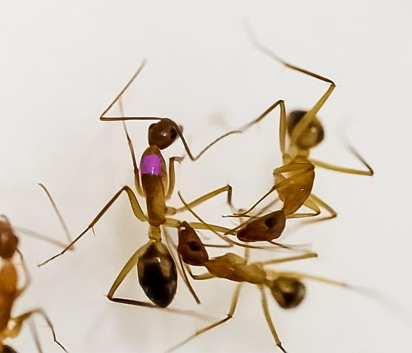“לא רק שהן מבצעות כריתות, הן אפילו מסוגלות לאבחן את הפצעים”. נמלה כורתת את הרגל של נמלה אחרת | מקור: Danny Buffat